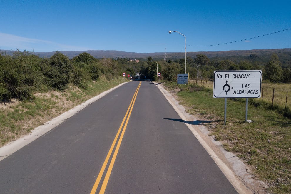 El acceso a las localidades de Villa El Chacay y Las Albahacas ya está pavimentado. Las obras, que demandaron una inversión superior a los 10 mil millones de pesos, se concretaron sobre un tramo de 9,6 kilómetros de la Ruta Provincial S-528, entre la Ruta Provincial 23 y el ingreso a ambas localidades del departamento Río Cuarto.