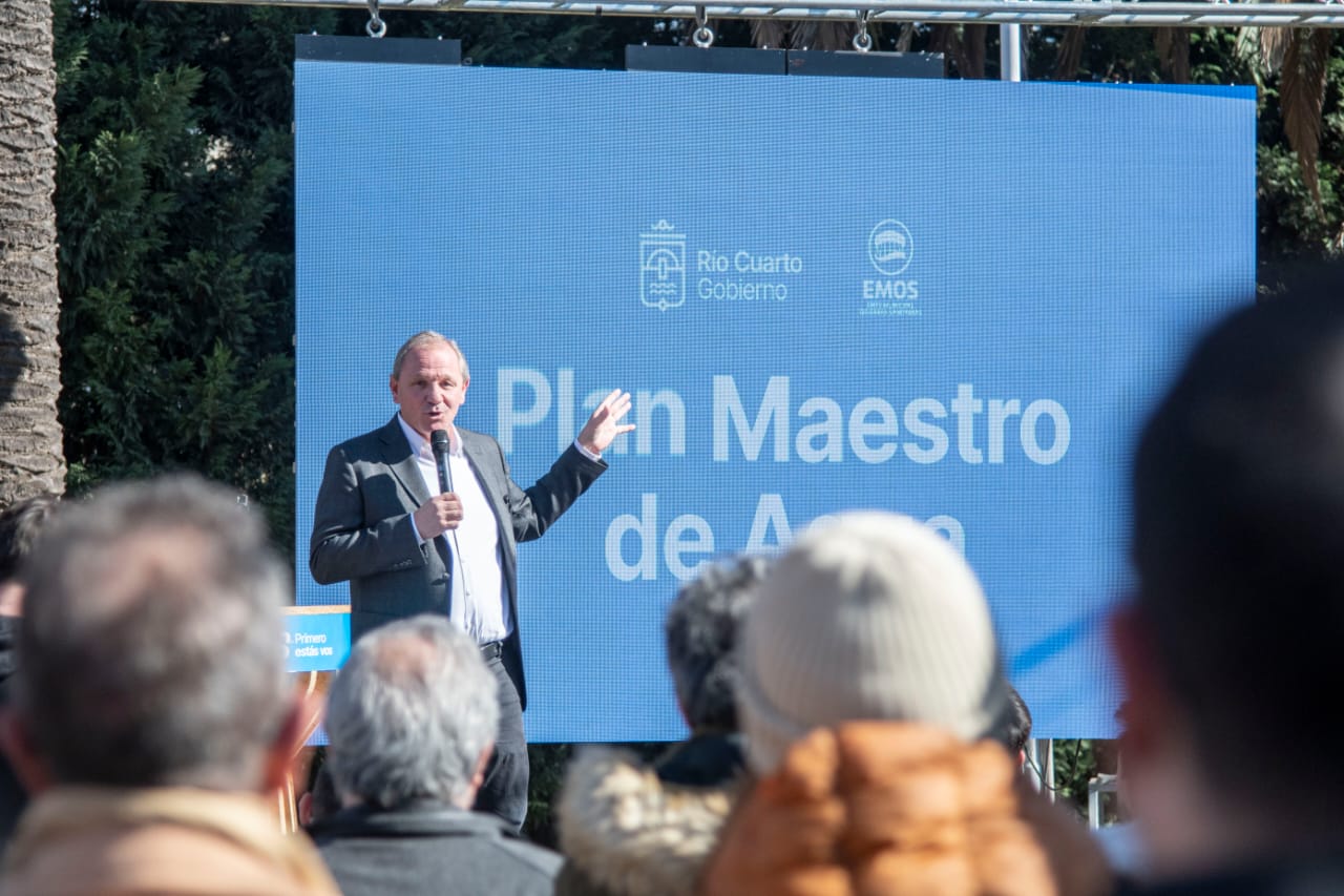 El intendente Guillermo De Rivas presentó oficialmente el Plan Maestro de Agua 2025-2037, un proyecto que, con una inversión estimada en 30 mil millones de pesos, busca garantizar el abastecimiento de agua potable a las generaciones futuras y acompañar el crecimiento urbano de Río Cuarto.