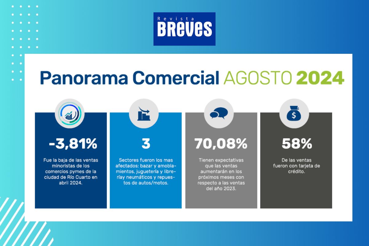 Las pymes de la ciudad de Río Cuarto enfrentaron un panorama complicado durante agosto de 2024. Según el informe del Centro Empresario, Comercial, Industrial y de Servicios (CECIS), las ventas minoristas mostraron una caída interanual del 3,81%, afectando a diversos sectores de la economía local. Sin embargo, el mismo relevamiento revela expectativas positivas de cara a los próximos meses, con un 70,08% de los comerciantes esperando un aumento en las ventas.